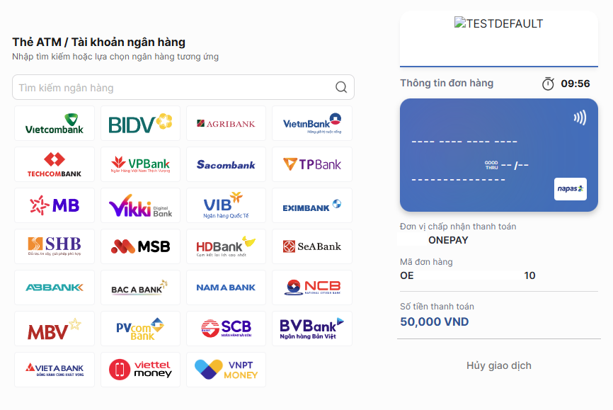 Bước 4: Chọn ngân hàng mà Hiệp Khách dùng để thanh toán -> Xác nhận thanh toán